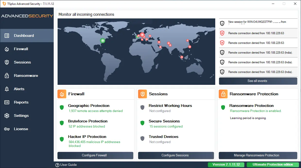SSL-encrypt your remote connections. Add TSplus Advanced Security and TSplus 2FA to maximize your remote infrastructure security.