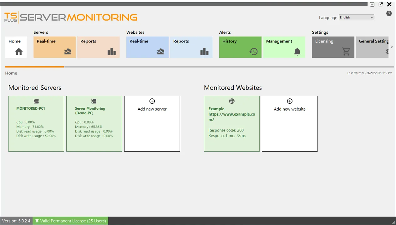 Real-time server and website monitoring software for remote work infrastructures. Get historical and real-time data about your servers, websites, applications and users.